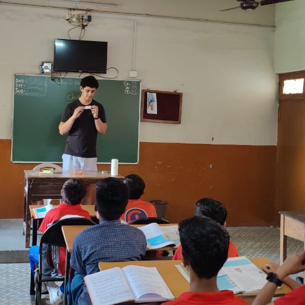 I arrived at my 6th-grade class, lit the hollowed tea bag, and everyone watched with jaws dropped to the floor. I then turned to the chalkboard to explain. The experiment has to do with air density, but I knew they were too young for me to use words like “density,” “molecules,” and “buoyancy,” so I drew it out. I first started by talking about how hot air dots (aka molecules) are further separated from each other compared to cold air dots. I accompanied the explanation with body movements; I would get smaller when talking about cold air and would get bigger when talking about hot air. Then came the explanation that hot air rises and cold air settles down. I used the example of ice and water and drew how the molecules in ice are further apart, but the water molecules are closer together, causing the ice to float.